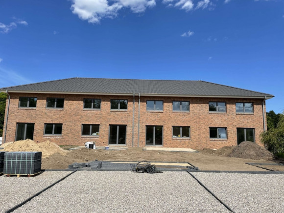 Unser Beitrag zum Thema Klimaschutz und Wohnungsknappheit. Neubau von 4 zweigeschossigen Reihenhäusern im Kieler Umland, mit KFW 40 erneuerbare Energien (EE) Standard und Erdwärmepumpe.